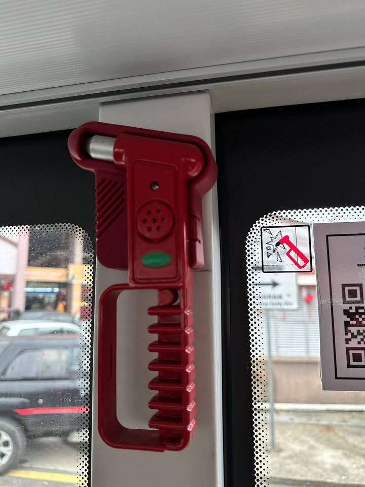 更重要的是,乘客安全也被纳入考量。巴士内设置了多达九个破窗器,皆在乘客可视、可达的位置,以确保紧急时刻下逃生。