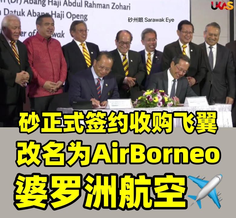 Home新闻快报签约了!MASWings改名为AirBorneo(婆罗洲航空)了 新闻快报 签约了!MASWings改名为AirBorneo(婆罗洲航空)了 By sarawakeyeadmin February 12, 2025 0 8 Share FacebookTwitterPinterestWhatsApp 签约了!MASWings改名为AirBorneo(婆罗洲航空)了。 由砂总理佐哥亲自出席见证,砂政府今天和大马航空集团MAG正式签署收购协议SPA,接管飞翼航空,从此砂拉越拥有了属于自己的航空公司。 View on Facebook Share FacebookTwitterPinterestWhatsApp Previous article在《搞笑行动》中出名的新加坡艺人林益民去世了Next article砂航空的新名字一经公布 sarawakeyeadminhttps://sarawakeye.my 相关文章 新闻快报 很多人关心的教育部长人选有没有换掉 December 16, 2025 新闻快报 最近的风云人物莫过于砂拉越总理阿邦佐 December 15, 2025 新闻快报 最新宣布 December 14, 2025 - Advertisment - 最受欢迎 很多人关心的教育部长人选有没有换掉 December 16, 2025 最近的风云人物莫过于砂拉越总理阿邦佐 December 15, 2025 最新宣布 December 14, 2025 在泰国如火如荼举行的东运会SEA Games中 December 14, 2025 Load more