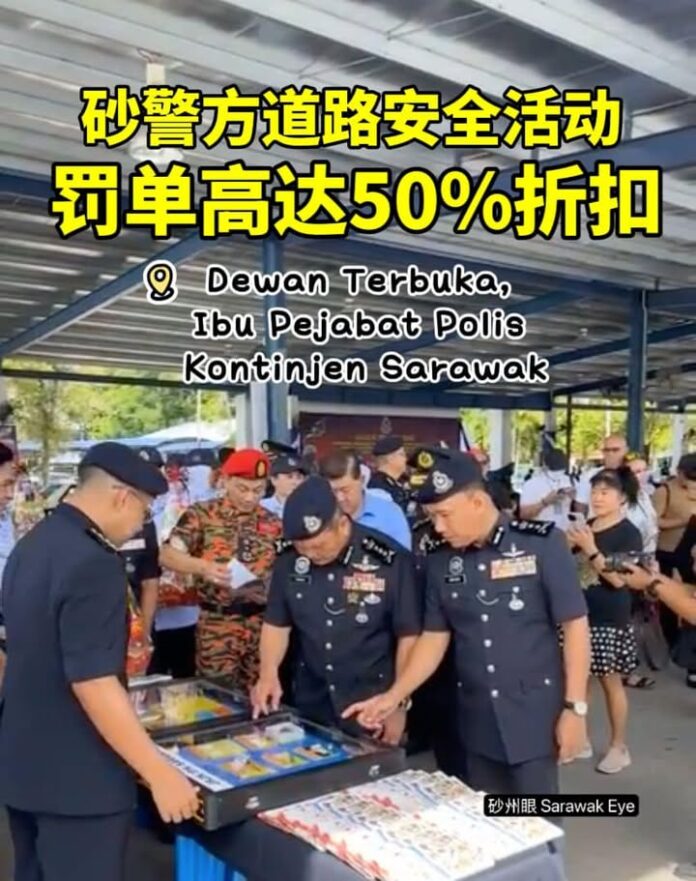 配合圣诞节道路安全行动和会客日活动,砂警队在总部礼堂设立服务柜台,让民众缴付罚单。这项折扣优惠会进行到这个星期五。
