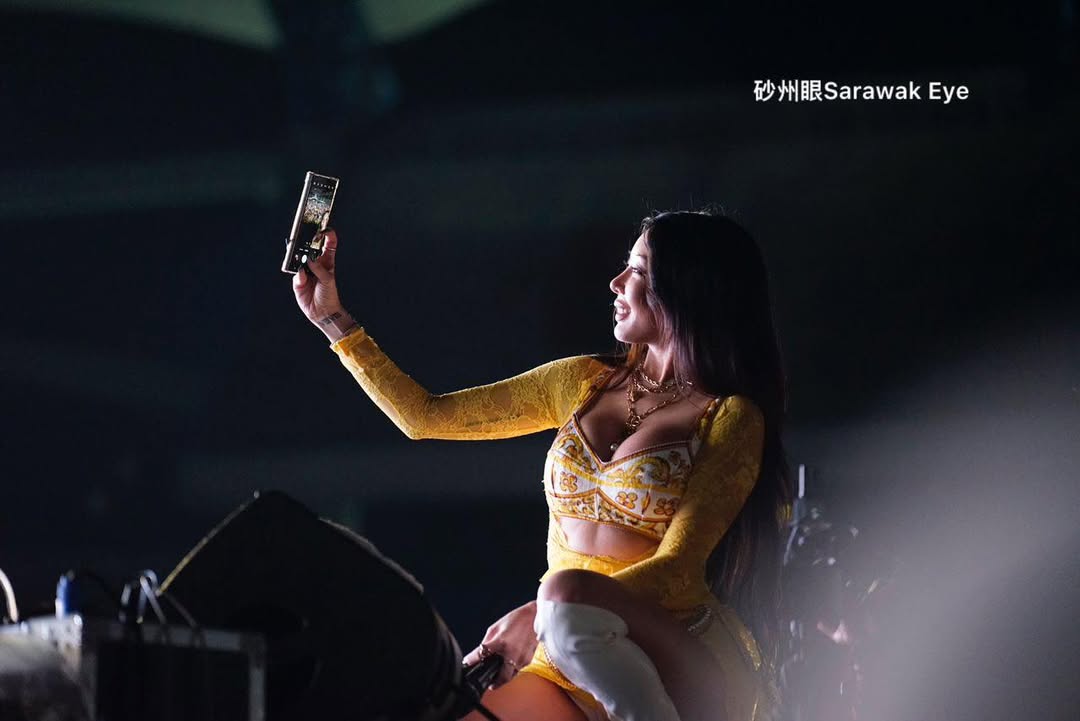 虽然没有带来很多首歌,Jessi又唱又跳浑身散发着性感。转过头,她说起话来却傻大姐十足,乐呵呵的,偷偷问摄影工作人员砂拉越话的我爱你们怎么说?