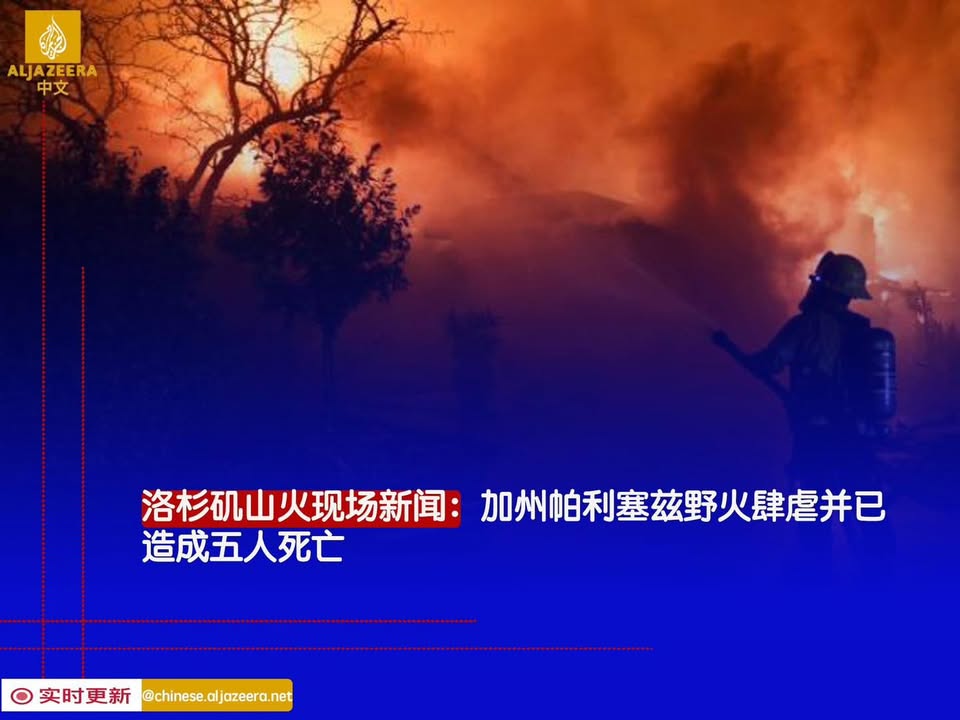 Home新闻快报美国洛杉矶大火!就在富人区 新闻快报 美国洛杉矶大火!就在富人区 By sarawakeyeadmin January 9, 2025 0 9 Share FacebookTwitterPinterestWhatsApp 美国洛杉矶大火!就在富人区,目前已超过一千多座建筑物被摧毁,40万用户断电,10万人被撤离。 8日下午6点左右的大火目前造成的死亡人数至少5人。 遭遇史上最具破坏性的这场火灾,从穆赫兰道至好莱坞大道,当地有很多好莱坞明星和名人的豪宅,相等于整个富人区被摧毁。 View on Facebook Share FacebookTwitterPinterestWhatsApp Previous article很多人问SKAS援助金为何不要直接进到银行户头就好Next article哎呀 sarawakeyeadminhttps://sarawakeye.my 相关文章 新闻快报 你们都知道以前东马和西马的时间有相差一个小时 December 17, 2025 新闻快报 很多人关心的教育部长人选有没有换掉 December 16, 2025 新闻快报 最近的风云人物莫过于砂拉越总理阿邦佐 December 15, 2025 - Advertisment - 最受欢迎 你们都知道以前东马和西马的时间有相差一个小时 December 17, 2025 很多人关心的教育部长人选有没有换掉 December 16, 2025 最近的风云人物莫过于砂拉越总理阿邦佐 December 15, 2025 最新宣布 December 14, 2025 Load more