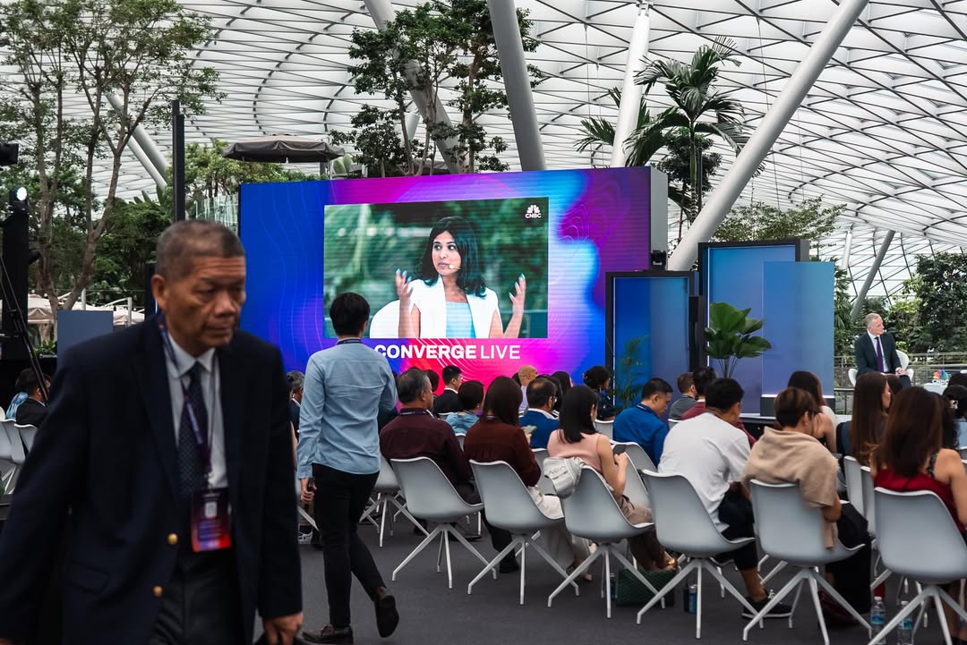 这次英国的CNBC在星耀樟宜举办的科技盛会,请来了世界级大咖,还把《Back to the Future》里的车都运来了,甚至在KANTIN门口放了一台AI机器人,未来感直接拉满!
