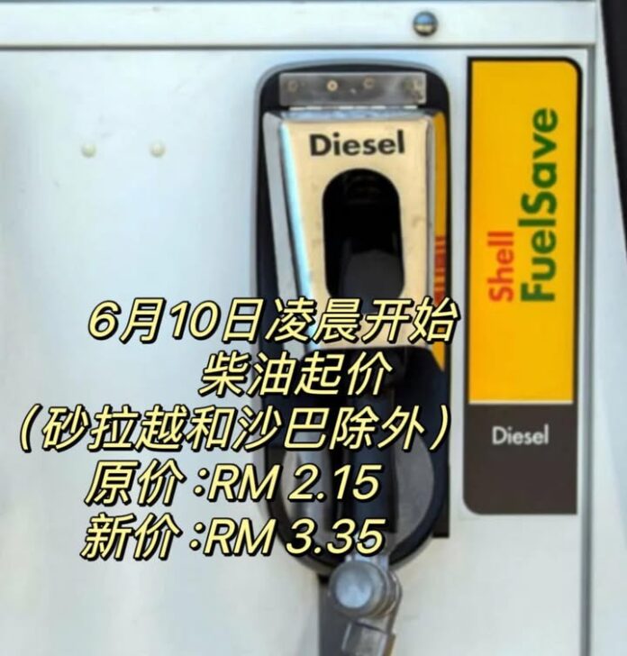 明天端午节,我国柴油零售价也将从6月10日(星期一)午夜12时开始会依据国际油价自由浮动,即每公升2令吉15仙提高至3令吉35仙。