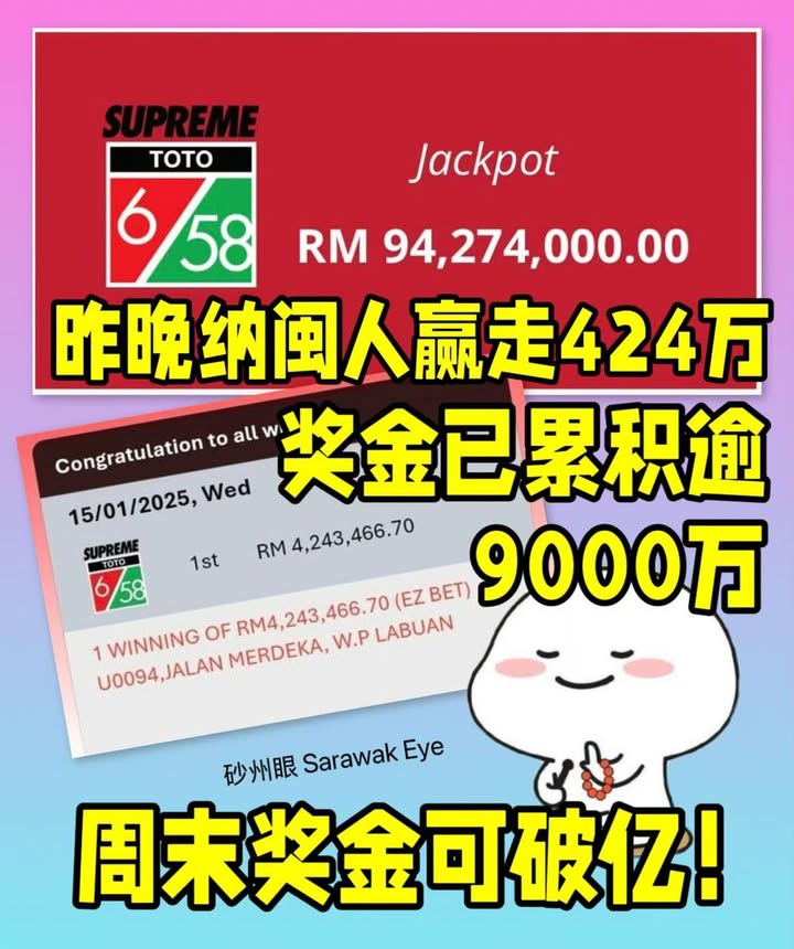 等到很晚,昨晚有人赢走部分奖金。但超级大赢家还没出现,再累积下去,周末奖金就破亿了。