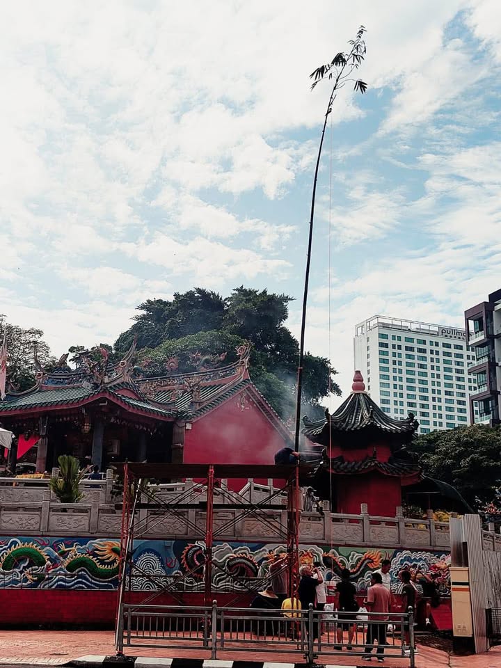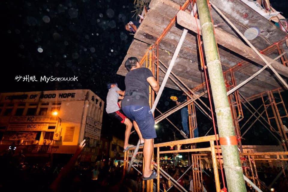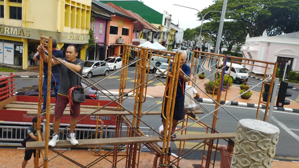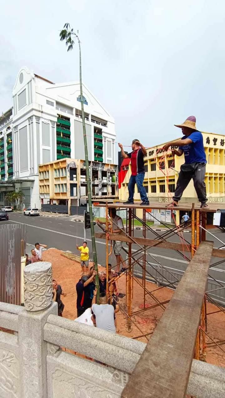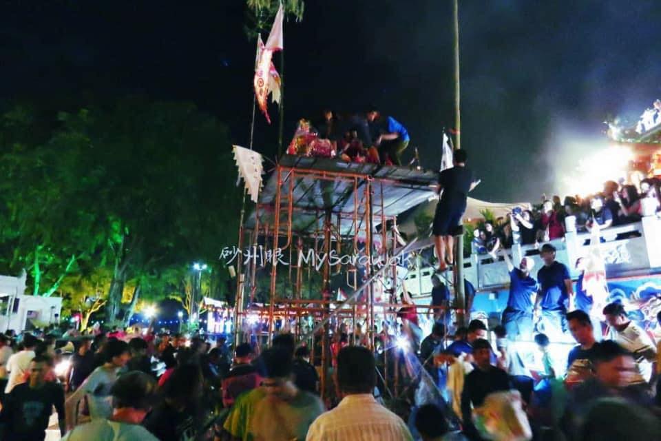 今天是农历七月三十,也是鬼节最后一天了,古晋大伯公寿山亭庙今早搭建抢孤架子,今晚会有热闹的抢孤活动。