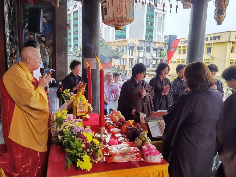这是古晋老巴刹庆祝地藏王菩萨圣诞暨中元节普渡胜会的常年活动,今早庙里非常热闹,大家都来拜拜、保佑风调雨顺,大家平安。