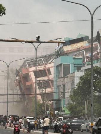 曼谷一栋建造中的30层高楼因地震倒塌,地震发生时,市区建筑剧烈摇晃,警报声四起,民众紧急撤离,现场一片混乱。
