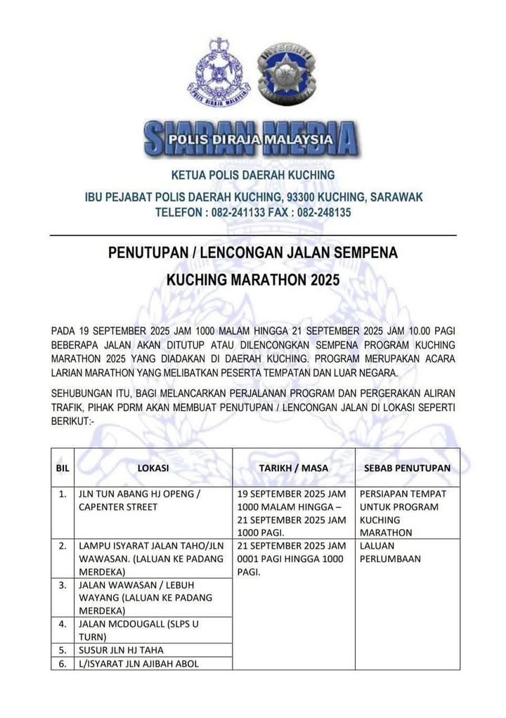 同时民众也注意有部分路段将被关闭,让跑者顺利完赛。关闭路线包括: