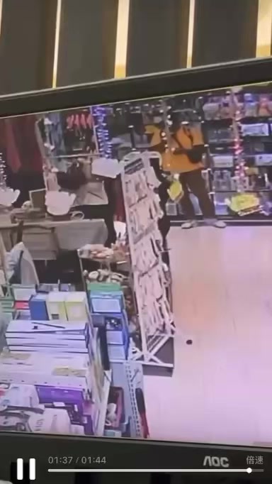 这是今早发生在City One 购物商场的盗窃事件,一名售卖精品的女子在柜台整理东西时,放在一旁的书包被一名穿着黄色上衣的男子偷走了。