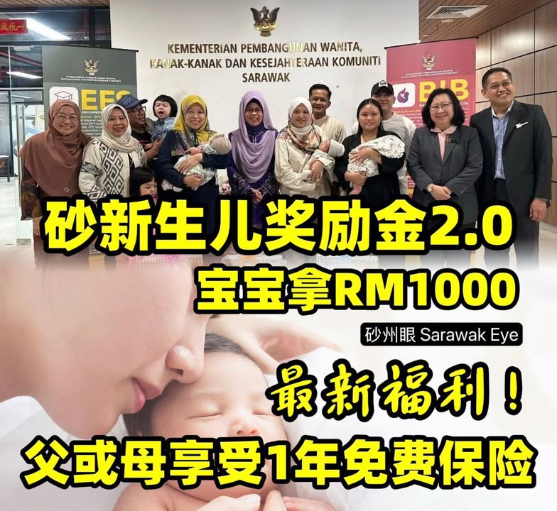 砂拉越在2019年推出新生儿奖励金,孩子出生可以获得1000令吉奖励金。这笔钱爸爸妈妈不能直接拿,而是放在伊斯兰银行享有4.2%利息,等到孩子满18岁才可以用。