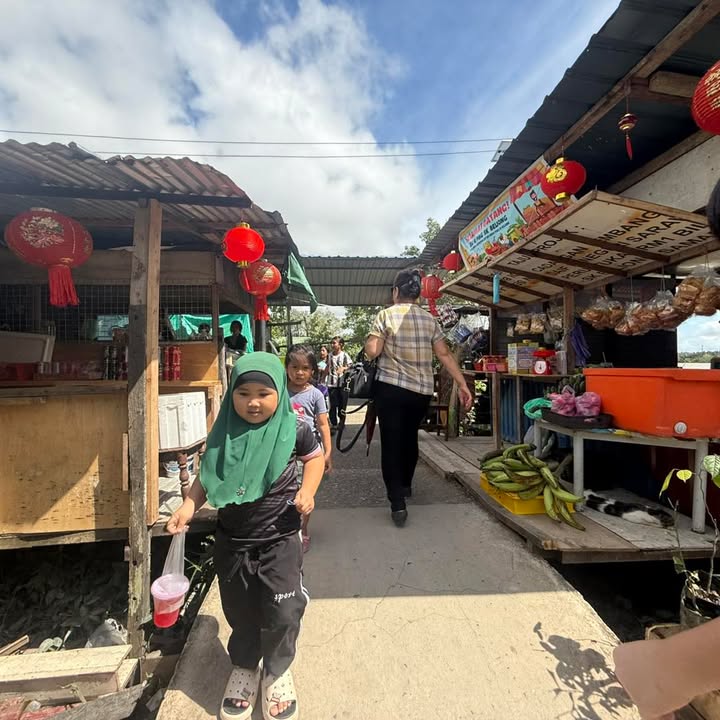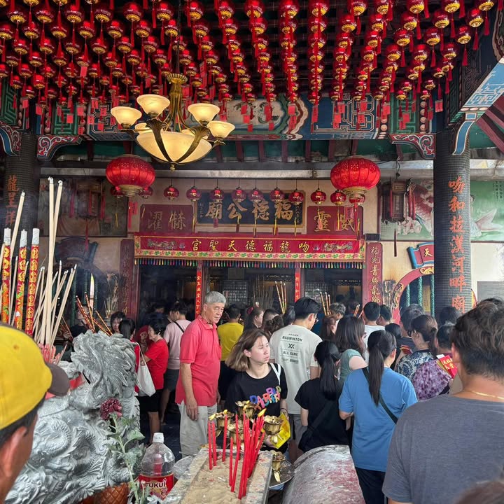 沿着庙前的马来档口也挂满红红灯笼,卖各种水果和零食。这就是砂拉越种族和宗教和谐的美好。