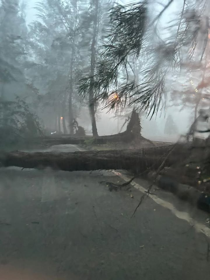 也有好多地方大树倒下和交通灯失灵。