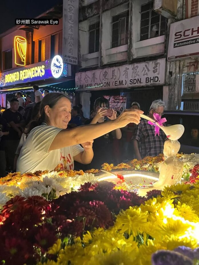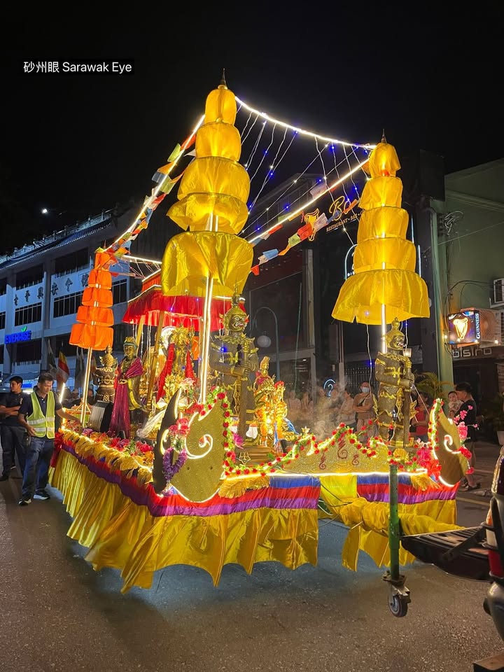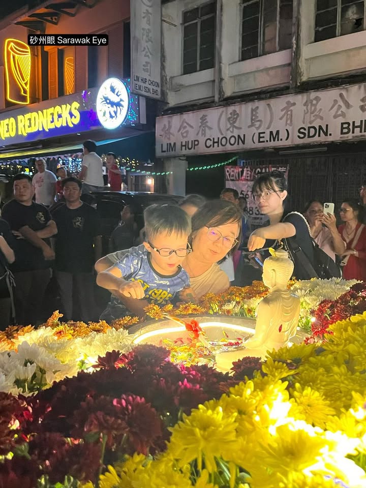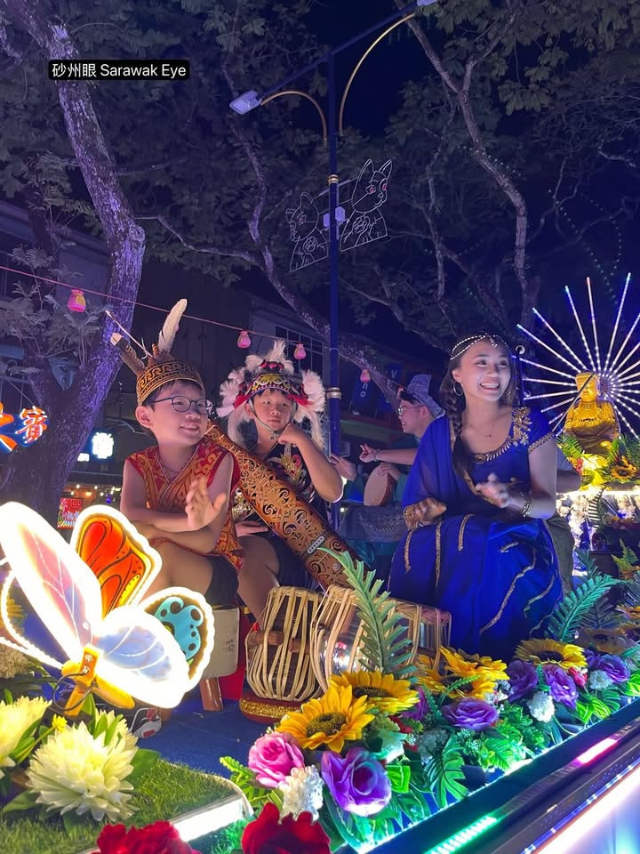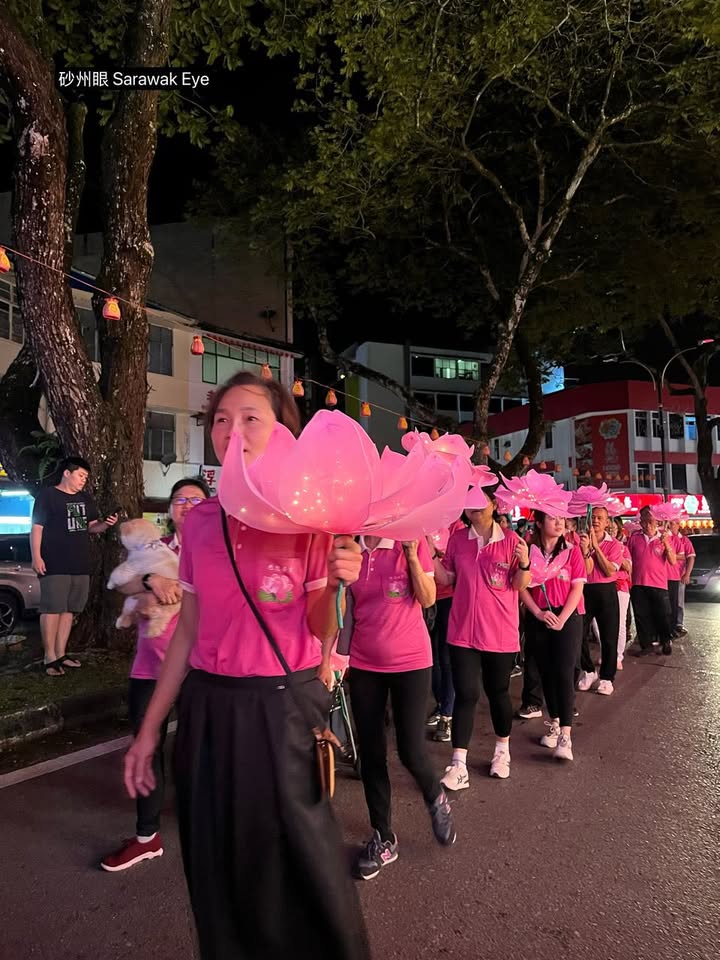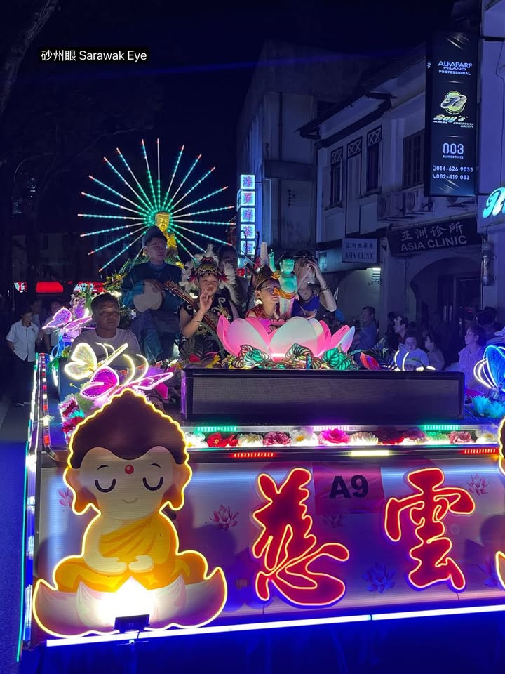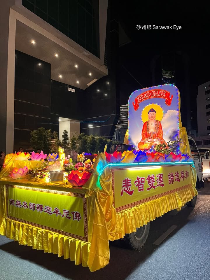 今天先和大家说卫塞节快乐,队伍从Padungan游行到神庙街一带,再从万福路回程,给大家看漂漂亮亮的花车。