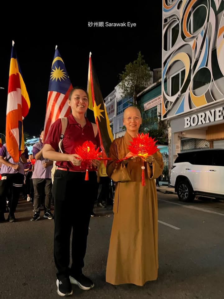 今年的卫塞节落在5月12日,马佛总会砂拉越分会和各佛教团体在古晋老街举行游行。