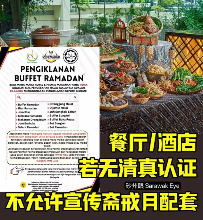 饮食业者和商家们注意了,如果没有清真认证,在斋戒月期间,不可使用Buffet Ramadan、 Set Ramadan、 Buffet Buka Puasa等词汇宣传套餐。