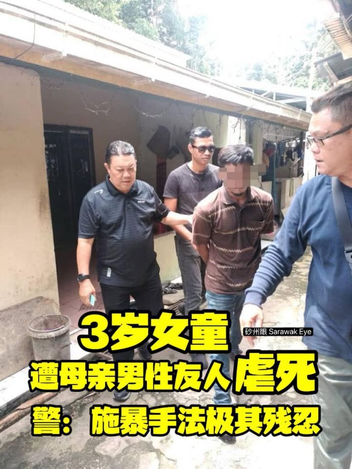 本月7日,3岁巫裔女童在古晋Kampung Rampangi被虐待致死,孩子母亲的32岁男性友人被逮捕。