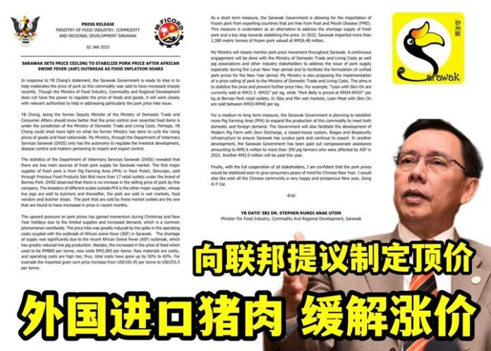 砂拉越去年面对猪瘟威胁,加上年底圣诞节和元旦假期导致供应和运输受影响,需求量增加,所以猪肉也缺货,价格也不稳定。另外,猪饲料涨价也是一个问题。