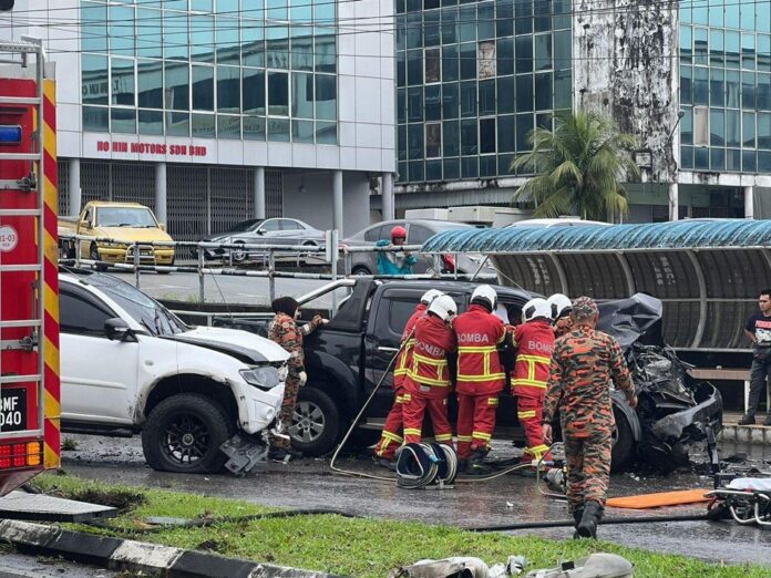 Home新闻快报Icom Square路段,今早车祸涉及四辆车 新闻快报 Icom Square路段,今早车祸涉及四辆车 By sarawakeyeadmin January 30, 2023 0 444 Share FacebookTwitterPinterestWhatsApp 【古晋30日讯】下雨天开车还是要特别小心。Pending Icom Square路段雨天常发生车祸,今早车祸涉及四辆车,其中两辆车是四轮驱动车,另外两辆则是轿车。 消拯员已经抵达现场展开救援行动,并救出一名受困在车内的女司机。相关单位目前也在清理车辆损毁洒在路上的油渍。 车祸也造成相关路段大塞车,警方也在现场纾缓交通。 链接至面子书帖子 Share FacebookTwitterPinterestWhatsApp Previous article年初九,市长家拜天公Next article今年你收到了多少红包? sarawakeyeadminhttps://sarawakeye.my 相关文章 新闻快报 沙巴的大选才刚刚结束 December 5, 2025 新闻快报 新加坡总理黄循财宣布 December 4, 2025 新闻快报 哇 December 3, 2025 - Advertisment - 最受欢迎 沙巴的大选才刚刚结束 December 5, 2025 新加坡总理黄循财宣布 December 4, 2025 哇 December 3, 2025 AirBorneo婆罗洲航空正式明年1月启航 December 2, 2025 Load more