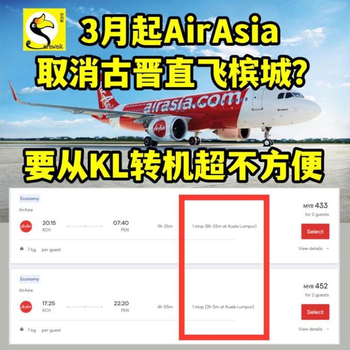 Home新闻快报3月起AirAsia取消古晋直飞槟城?