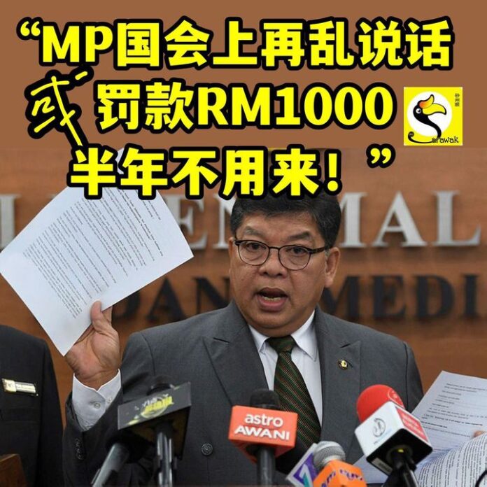 Home政治与资讯MP国会上再乱说话,罚款1千或半年不用来 政治与资讯新闻快报 MP国会上再乱说话,罚款1千或半年不用来 By sarawakeyeadmin February 7, 2023 0 386 Share FacebookTwitterPinterestWhatsApp 【砂拉越7日讯】领袖必须要有领袖的素质,新的一年,他们在殿堂里也要被规范和限制了。 新任议长来自公正党的Johari对此表示,有意对发表种族主义、性别歧视、侮辱性言论的MP罚款最高1000令吉,并且可能禁止他们出席国会半年。 我们都知道,国会殿堂是国会议员为人民福祉做出建设性讨论的地方,不是用来互相叫骂甚至出言辱骂。因此国会将设立特别委员会监督MP们在国会会议上的言行举止。 2023年,希望我们的领袖也要好话出来。 链接至面子书帖子 Share FacebookTwitterPinterestWhatsApp Previous article土耳其有难,大马派出拯救队伸援Next articleAirAsia:半数飞机要保养,古晋-槟城直航3月起停飞 sarawakeyeadminhttps://sarawakeye.my 相关文章 新闻快报 沙巴的大选才刚刚结束 December 5, 2025 新闻快报 新加坡总理黄循财宣布 December 4, 2025 新闻快报 哇 December 3, 2025 - Advertisment - 最受欢迎 沙巴的大选才刚刚结束 December 5, 2025 新加坡总理黄循财宣布 December 4, 2025 哇 December 3, 2025 AirBorneo婆罗洲航空正式明年1月启航 December 2, 2025 Load more
