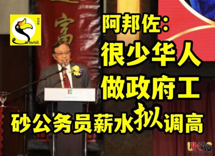 砂总理Datuk Patinggi Abang Jo出席华社新春团拜活动时说,相信是因为做公务员的薪水比较低,所以吸引不到华裔子弟做出申请。