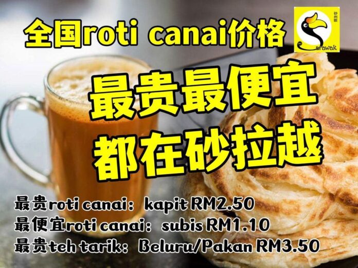 【砂拉越10日讯】砂拉越真的很大,在同一片土地上,消费水平却天差地远,单是以国民早餐“roti canai”为例,全国最贵和最便宜的都在砂拉越。