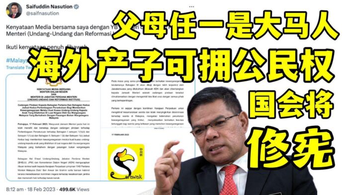 【砂拉越20日讯】父母只要有其中一人是大马人,在海外诞生的孩子,在修宪之后,将可获得公民权!