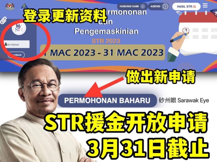 STR援助金分成4次阶段性发放,除了已经在1月发放,接下来4月、7月和11月都会分派;4月的会根据2022年前朝政府BKM援助金受惠者的资料库来发放;7月和11月将根据最新2023年STR资料库数据发放。