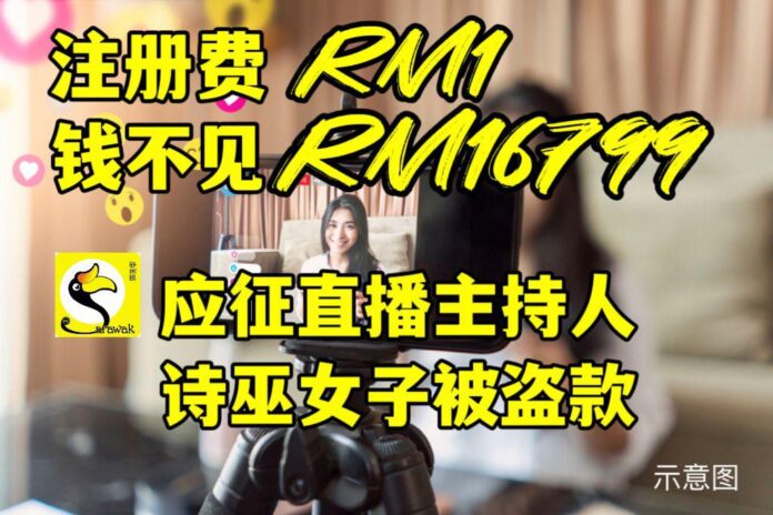 诗巫28岁女子看到外国网站应征直播主持人,注册费只要RM1,就联络负责人,结果给了银行户头资料,接近一万七千令吉就这样被盗走。