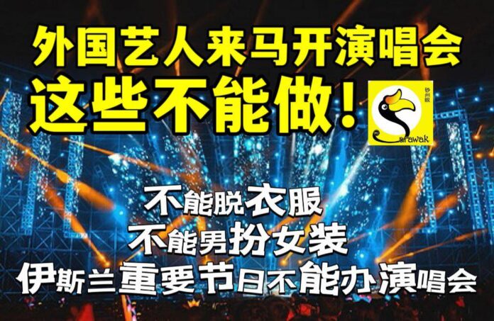 包括演唱会期间就算再High也不可以脱衣服、不可以男扮女装、在伊斯兰的大节日都不能办演唱会。