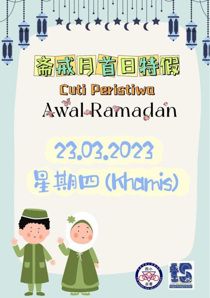 Home新闻快报第一次华小在斋戒月的第一天有特别假期 新闻快报 第一次华小在斋戒月的第一天有特别假期 By sarawakeyeadmin March 22, 2023 0 360 Share FacebookTwitterPinterestWhatsApp 【古晋22日讯】这个星期学生都很开心吧!才刚刚开学,迎新周不用上课,而且明天又放特假了! 古晋华小宣布明天斋戒月首日放特假,这也是第一次华小在斋戒月的第一天有特别假期,去年一些华小则选择在屠妖节放特假。 一般上,学校都有四天特别假期可以选择放特假,接下来的华人重要节日如清明节、端午节…会不会也有特假呢? 不管如何,有假期都是开心的事,很多华人同胞也期待斋戒月,可以和穆斯林同胞一起开斋享用美食 链接至面子书帖子 Share FacebookTwitterPinterestWhatsApp Previous article人猿婆婆生病了,愿她早日康复Next article祝大家斋戒月愉快! sarawakeyeadminhttps://sarawakeye.my 相关文章 新闻快报 沙巴的大选才刚刚结束 December 5, 2025 新闻快报 新加坡总理黄循财宣布 December 4, 2025 新闻快报 哇 December 3, 2025 - Advertisment - 最受欢迎 沙巴的大选才刚刚结束 December 5, 2025 新加坡总理黄循财宣布 December 4, 2025 哇 December 3, 2025 AirBorneo婆罗洲航空正式明年1月启航 December 2, 2025 Load more