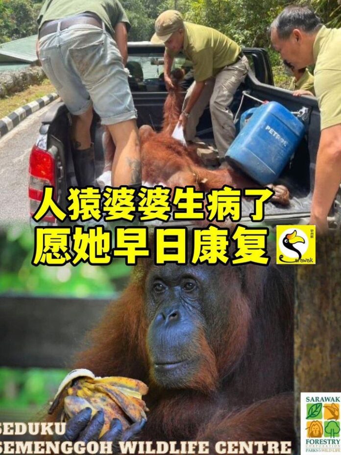 【古晋22日讯】为生病的Seduku人猿婆婆打气,她已经52岁了,愿她身体健健康康的。