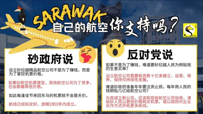 【砂拉越25日讯】砂拉越成立自己的航空公司八字还没有一撇,不过已经在朝野引起热烈讨论,看了双方的言论,你们有什么想法?