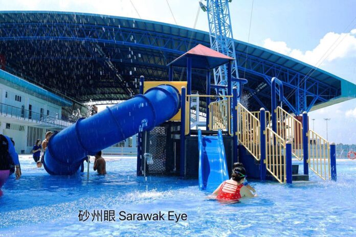 虽然水上中心坐落在Petra Jaya,离古晋市区有一段距离,但遇到假期或周末,也会有一些华裔父母带孩子前往,因为里头的迷你水上儿童设施,对孩子来说有很大的吸引力。