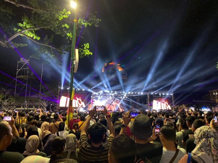 Home新闻快报“Rakyat ”演唱会,据说现场至少有三万人 新闻快报 “Rakyat ”演唱会,据说现场至少有三万人 By sarawakeyeadmin July 22, 2023 0 297 Share FacebookTwitterPinterestWhatsApp 【砂拉越22日讯】这是一场万人的露天演唱会,大家都嗨翻天,到底是哪些歌手这么有魅力! 配合砂拉越日举行的“Rakyat ”演唱会,请来多位著名的马来和本地歌手表演,据说现场至少有三万人。 小编也来凑热闹,已经很久没有感受到人挤人的这般热闹气氛了。 链接至面子书帖子 Tags砂拉越日 Share FacebookTwitterPinterestWhatsApp Previous article今晚很多人都在等最美的烟火秀Next article今晚的压轴烟火,燃放时间正好12am sarawakeyeadminhttps://sarawakeye.my 相关文章 新闻快报 沙巴的大选才刚刚结束 December 5, 2025 新闻快报 新加坡总理黄循财宣布 December 4, 2025 新闻快报 哇 December 3, 2025 - Advertisment - 最受欢迎 沙巴的大选才刚刚结束 December 5, 2025 新加坡总理黄循财宣布 December 4, 2025 哇 December 3, 2025 AirBorneo婆罗洲航空正式明年1月启航 December 2, 2025 Load more
