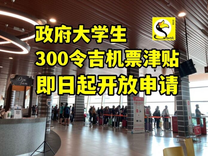 【砂拉越15日讯】政府大学生,交通部给你们的RM300机票津贴已经开放申请咯!
