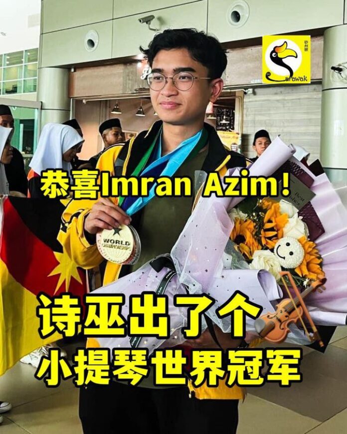Home新闻快报恭喜Imran Azim!诗巫出了个小提琴世界冠军 新闻快报 恭喜Imran Azim!诗巫出了个小提琴世界冠军 By sarawakeyeadmin August 15, 2023 0 345 Share FacebookTwitterPinterestWhatsApp 【诗巫15日讯】恭喜你,伊兰姆小弟弟! 来自诗巫16岁的他,日前代表马来西亚参加在美国举行的世界表演艺术锦标赛,以表演小提琴,拿到1金2银2铜的成绩,等于是世界冠军了✌️ 这项比赛从7月28日到8月6日举行,伊兰姆(Imran Azim Iskandar)是在几个项目中拿奖,包括传统音乐组(金牌)、当代音乐组(银牌)、原创音乐组(银牌)、爵士音乐组(铜牌)与公开组(铜牌)。 伊兰姆是来自武吉阿瑟中学,恭喜你,你是砂拉越的骄傲。 链接至面子书帖子 Share FacebookTwitterPinterestWhatsApp Previous articleDoulos Hope漂浮书船不来古晋了Next article政府大学生300令吉机票津贴即日起开放申请 sarawakeyeadminhttps://sarawakeye.my 相关文章 新闻快报 沙巴的大选才刚刚结束 December 5, 2025 新闻快报 新加坡总理黄循财宣布 December 4, 2025 新闻快报 哇 December 3, 2025 - Advertisment - 最受欢迎 沙巴的大选才刚刚结束 December 5, 2025 新加坡总理黄循财宣布 December 4, 2025 哇 December 3, 2025 AirBorneo婆罗洲航空正式明年1月启航 December 2, 2025 Load more