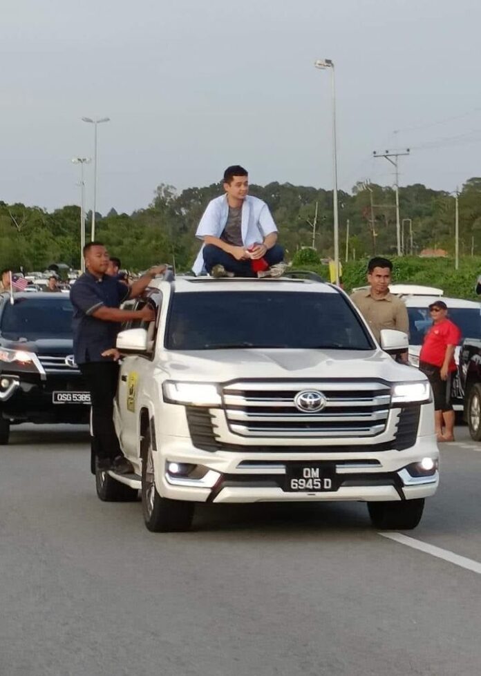 Home政治与资讯Agong的儿子东姑哈山纳,坐在车顶抵达民都鲁 政治与资讯新闻快报 Agong的儿子东姑哈山纳,坐在车顶抵达民都鲁 By sarawakeyeadmin September 11, 2023 0 348 Share FacebookTwitterPinterestWhatsApp 【民都鲁11日讯】今天先不看Agong,给你们看Agong的儿子东姑哈山纳,也是帅哥一枚! 来到风土人情浓厚的东马砂拉越,就用乡间小路的方式“吃风”,坐在车顶上抵达民都鲁目的地。 东姑哈山纳也是彭亨摄政王陛下,1995年出生的他今年27岁,相貌堂堂引起了很多人注意,这一次抢走了“父王”的风头 Photo Credit:UKAS、Bintulu News Page 链接至面子书帖子 Share FacebookTwitterPinterestWhatsApp Previous article潮州公会举办出花园成人礼Next article西连木筏赛好壮观 sarawakeyeadminhttps://sarawakeye.my 相关文章 新闻快报 沙巴的大选才刚刚结束 December 5, 2025 新闻快报 新加坡总理黄循财宣布 December 4, 2025 新闻快报 哇 December 3, 2025 - Advertisment - 最受欢迎 沙巴的大选才刚刚结束 December 5, 2025 新加坡总理黄循财宣布 December 4, 2025 哇 December 3, 2025 AirBorneo婆罗洲航空正式明年1月启航 December 2, 2025 Load more
