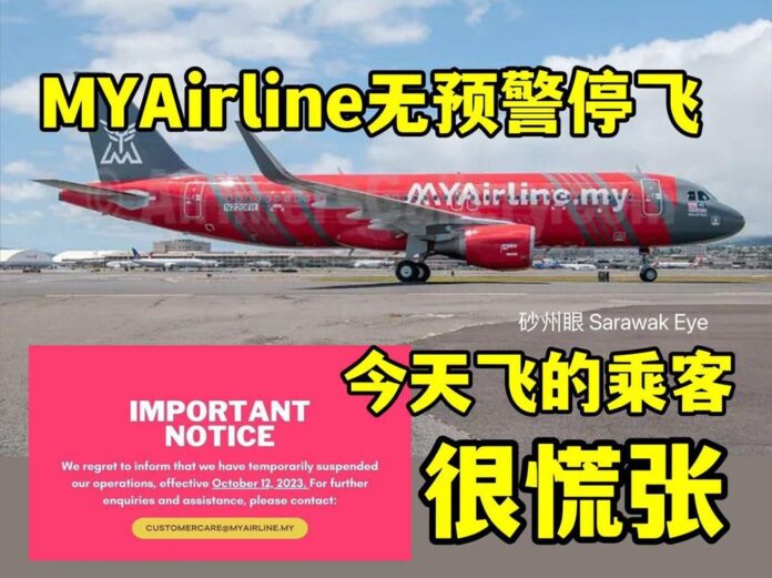 【砂拉越12日讯】MYAirline今日清晨宣布停飞后,古晋国际机场今早也涌现满满人潮,现场一片混乱,很多乘客提了行李箱去机场却被放飞机。