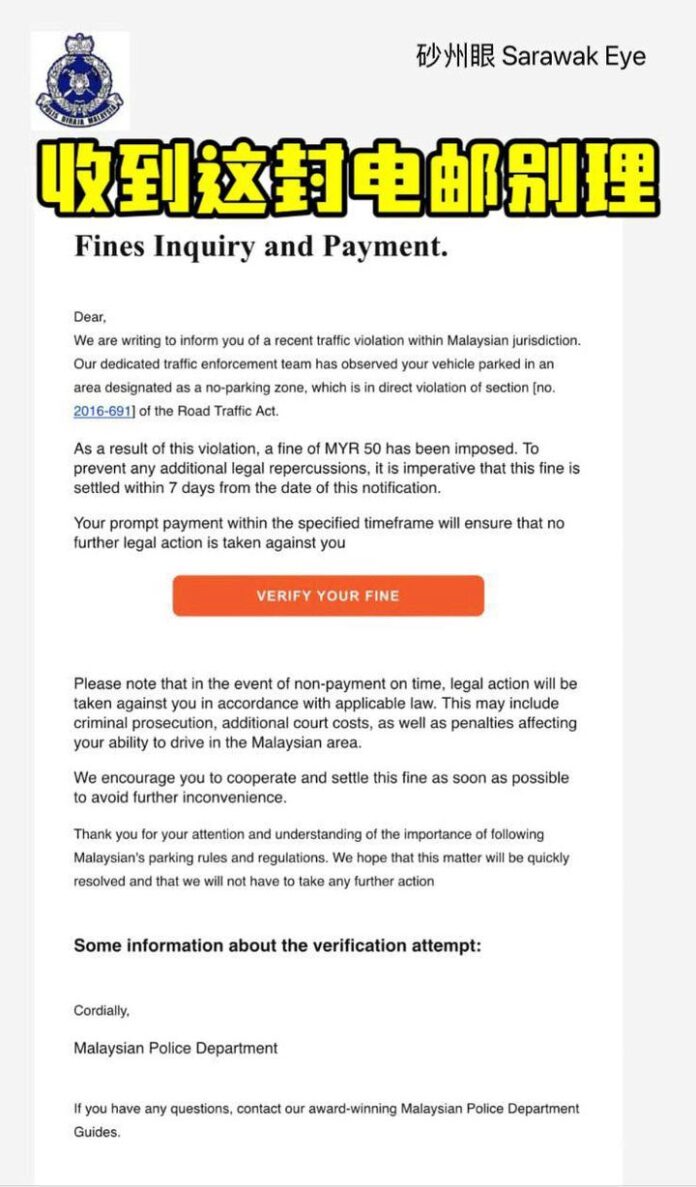 Home政治与资讯收到这封电邮别离 政治与资讯新闻快报 收到这封电邮别离 By sarawakeyeadmin October 20, 2023 0 237 Share FacebookTwitterPinterestWhatsApp 【古晋20日讯】最近什么诈骗招数都有,有收到这封email催你还罚单的不要理,警方澄清这是诈骗集团的伎俩。 Email里面附上的链接千万不要点,不要verify your fine。 砂警察总监表示,交警从来没有用email叫大家交过“牛肉干”的罚单。 不过,如果你们有欠罚单,还是去清掉比较好,通常是用官方APP或者直接到警局还,是最保险的方法。 链接至面子书帖子 Share FacebookTwitterPinterestWhatsApp Previous article古晋最早的圣诞树?Next article双层巴士你搭过吗? sarawakeyeadminhttps://sarawakeye.my 相关文章 新闻快报 沙巴的大选才刚刚结束 December 5, 2025 新闻快报 新加坡总理黄循财宣布 December 4, 2025 新闻快报 哇 December 3, 2025 - Advertisment - 最受欢迎 沙巴的大选才刚刚结束 December 5, 2025 新加坡总理黄循财宣布 December 4, 2025 哇 December 3, 2025 AirBorneo婆罗洲航空正式明年1月启航 December 2, 2025 Load more