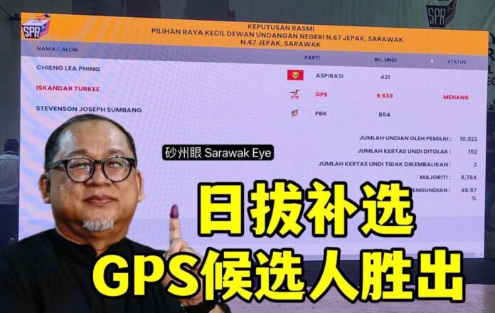 Home政治与资讯日拔补选,GPS候选人胜出 政治与资讯新闻快报 日拔补选,GPS候选人胜出 By sarawakeyeadmin November 4, 2023 0 235 Share FacebookTwitterPinterestWhatsApp 【砂拉越4日讯】今天投票的Jepak日拔补选,GPS候选人以多数票胜出,守住土保党的领土。 没有太多悬念,随着小选举的成绩出炉,GPS继续在82个议席中持有76个,维持2021年砂选举的成绩。在砂拉越,GPS的势力可以说是稳如泰山。 日拔区原州议员达立朱菲立在9月15日逝世后,伊斯干达道奇代表GPS出战补选,对手是人民志愿党(ASPIRASI)的詹礼斌和砂肯雅兰党(PBK)的史蒂文森。 链接至面子书帖子 Share FacebookTwitterPinterestWhatsApp Previous article用爱的方式散播和平,而非仇恨Next article政府澄清:国民服务明年若重启,仅2007年出生才会受召 sarawakeyeadminhttps://sarawakeye.my 相关文章 新闻快报 沙巴的大选才刚刚结束 December 5, 2025 新闻快报 新加坡总理黄循财宣布 December 4, 2025 新闻快报 哇 December 3, 2025 - Advertisment - 最受欢迎 沙巴的大选才刚刚结束 December 5, 2025 新加坡总理黄循财宣布 December 4, 2025 哇 December 3, 2025 AirBorneo婆罗洲航空正式明年1月启航 December 2, 2025 Load more