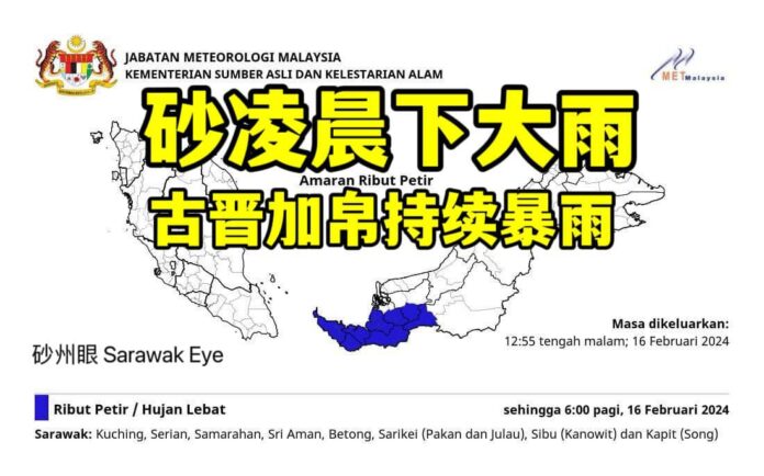 根据大马气象局显示,砂拉越地区还是有雨,尤其是古晋和Song会有暴雨。