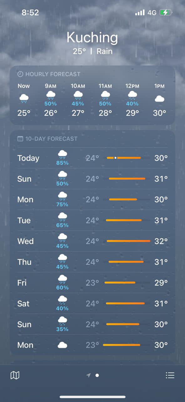Home新闻快报今天的天气预报 新闻快报 今天的天气预报 By sarawakeyeadmin March 2, 2024 0 227 Share FacebookTwitterPinterestWhatsApp 【古晋2日讯】来看看今天的天气预报。 找了官方的,以及手机版的,仅参考。因为天气变幻莫测难预料,古晋现在雨停了但天空还很阴暗,大家都担心雨神会再来。 根据大马气象局截止早上830的预测,砂拉越仅有沐胶还有暴雨,古晋一两个地方或许会有雷雨;不过较早前的预测则是,古晋黄色警报到明天3/3日。 凌晨由气象局释出的报告显示古晋没有暴雨,没想到下了一整夜的雨,有些地方甚至水位上升至膝盖,还导致住家电流中断。 祈求上天的同时,我们也祈求地上的掌权者,做好排水和防范水灾工程,让老百姓安居乐业。 链接至面子书帖子 Share FacebookTwitterPinterestWhatsApp Previous article吃年糕补天穿Next article古晋淹水重灾区 sarawakeyeadminhttps://sarawakeye.my 相关文章 新闻快报 最近的风云人物莫过于砂拉越总理阿邦佐 December 15, 2025 新闻快报 最新宣布 December 14, 2025 新闻快报 在泰国如火如荼举行的东运会SEA Games中 December 14, 2025 - Advertisment - 最受欢迎 最近的风云人物莫过于砂拉越总理阿邦佐 December 15, 2025 最新宣布 December 14, 2025 在泰国如火如荼举行的东运会SEA Games中 December 14, 2025 Pending一间车行今天凌晨5点传出火警 December 14, 2025 Load more