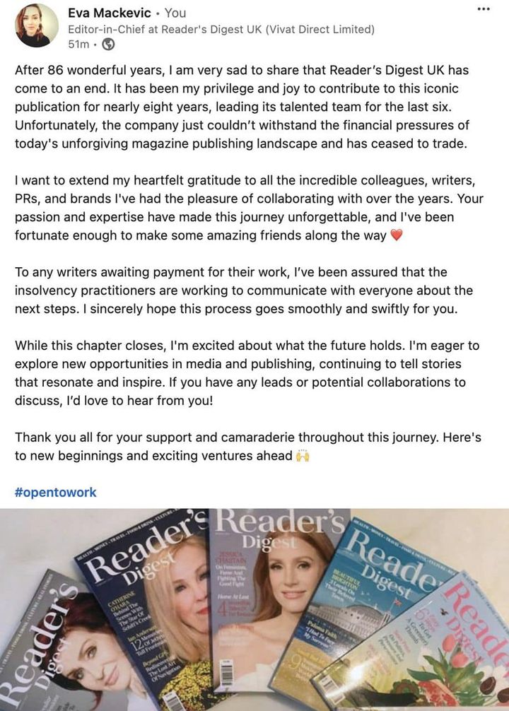 在难以转型无法接轨,面对财务压力情况下,英国的《读者文摘》也选择了停止营业。以后,英国的读者少了一份时代性的杂志了。