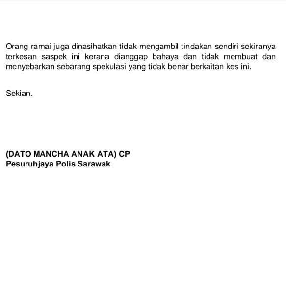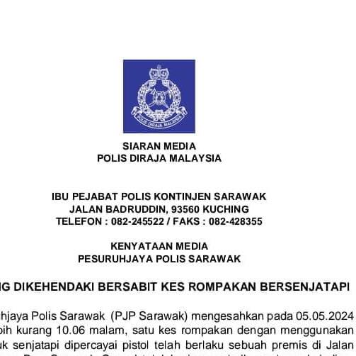 Home新闻快报警方通缉持枪嫌犯 新闻快报 警方通缉持枪嫌犯 By sarawakeyeadmin May 10, 2024 0 202 Share FacebookTwitterPinterestWhatsApp 【古晋10日讯】这名嫌犯有持枪,有发现他的下落要尽快联络警方,不要擅自采取行动。 砂警察总监拿督曼查今天公布嫌犯的照片,呼吁社会大众提高警惕,并形容这是极度危险人物。 这名来自美里的土著嫌犯(36岁)是5月5日晚上10时在古晋石隆门燕窝山持枪抢劫,目前已被警方通缉。 任何情报可即刻联络012-7100711。 链接至面子书帖子 Share FacebookTwitterPinterestWhatsApp Previous article来自砂拉越 上议院议长病逝Next article世界各地出现极光 sarawakeyeadminhttps://sarawakeye.my 相关文章 新闻快报 最新宣布 December 14, 2025 新闻快报 在泰国如火如荼举行的东运会SEA Games中 December 14, 2025 新闻快报 Pending一间车行今天凌晨5点传出火警 December 14, 2025 - Advertisment - 最受欢迎 最新宣布 December 14, 2025 在泰国如火如荼举行的东运会SEA Games中 December 14, 2025 Pending一间车行今天凌晨5点传出火警 December 14, 2025 华人们 December 13, 2025 Load more