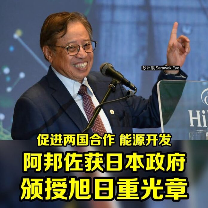 这份荣誉被称为“旭日重光章”,肯定他推动马来西亚和日本,尤其是砂拉越之间的交流合作。