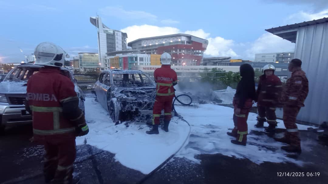 Pending一间车行今天凌晨5点传出火警,停在露天停车场的两辆汽车着火,消防车即刻出动,也导致一早就警铃大作。