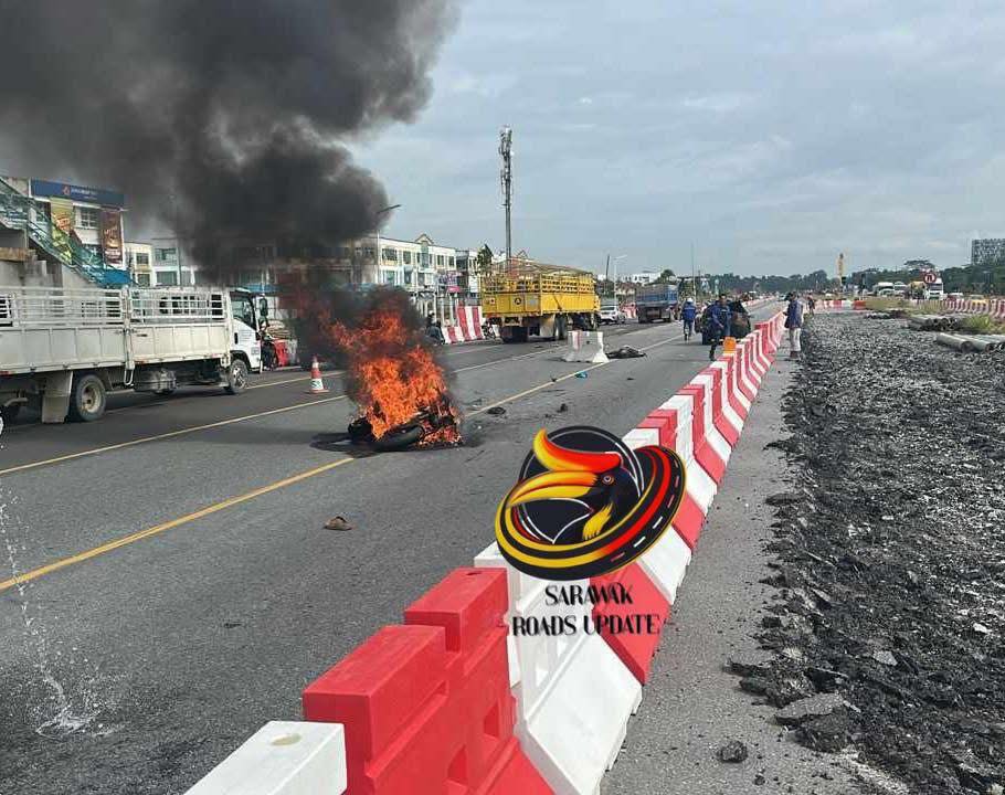 车祸发生在三马拉汉——古晋高速公路,接近UNIMAS的红绿灯处。从照片可见是施工路段。